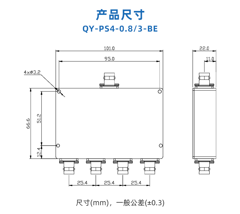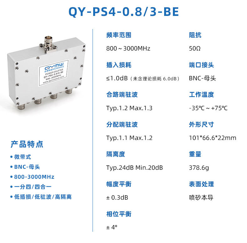 插入损耗:≤1.0dB(未含理论损耗 6.0dB)