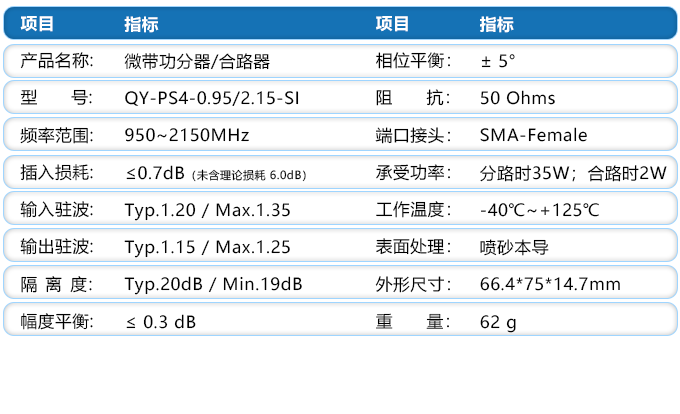 分合路数:四路功分器