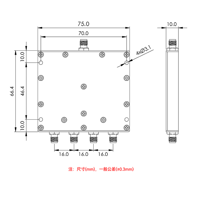 射频一分四路功分器