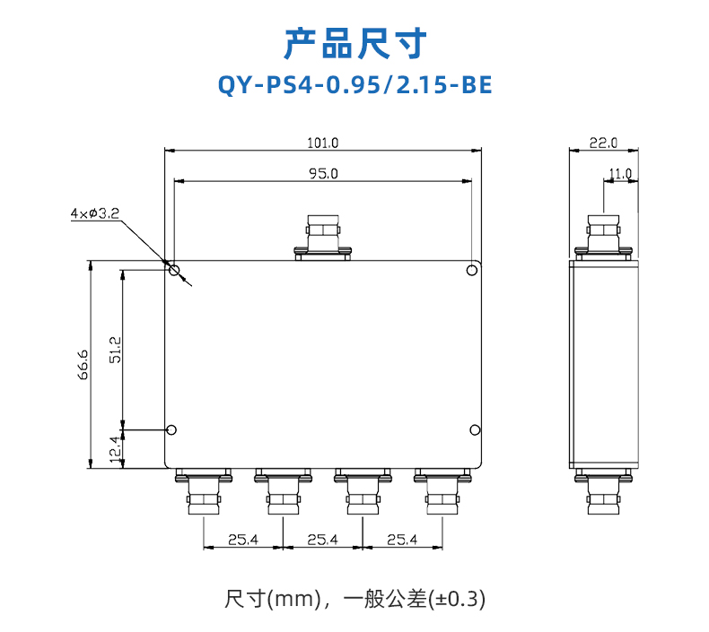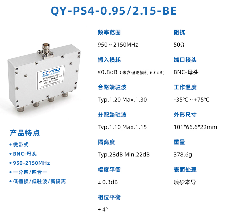 插入损耗:≤0.8dB(未含理论损耗 6.0dB)