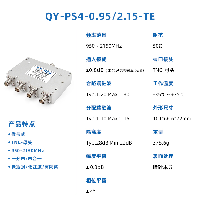 插入损耗:≤0.8dB(未含理论损耗 6.0dB)