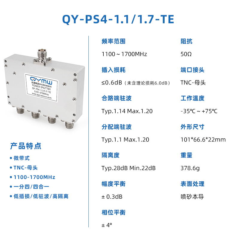 插入损耗:≤0.6dB(未含理论损耗 6.0dB)