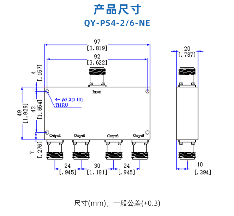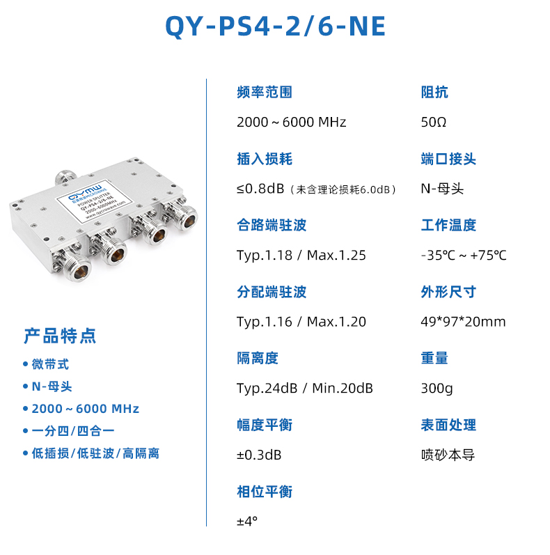 插入损耗:≤0.8dB(未含理论损耗 6.0dB)