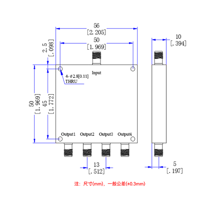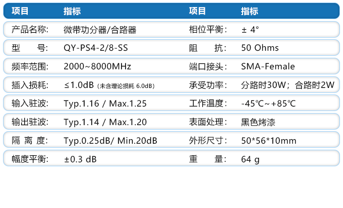 插入损耗:≤1.0dB(未含理论损耗6.0dB)