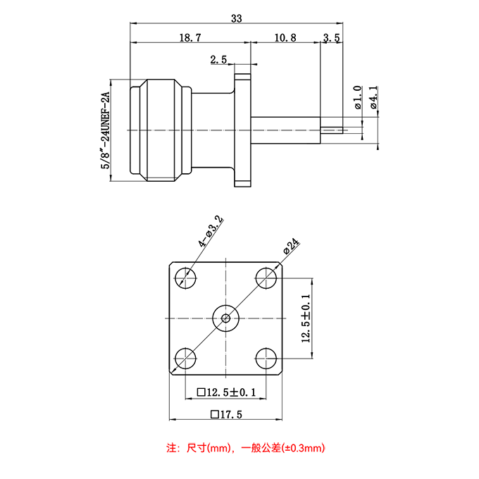 接头类型:N-母头 外螺内孔