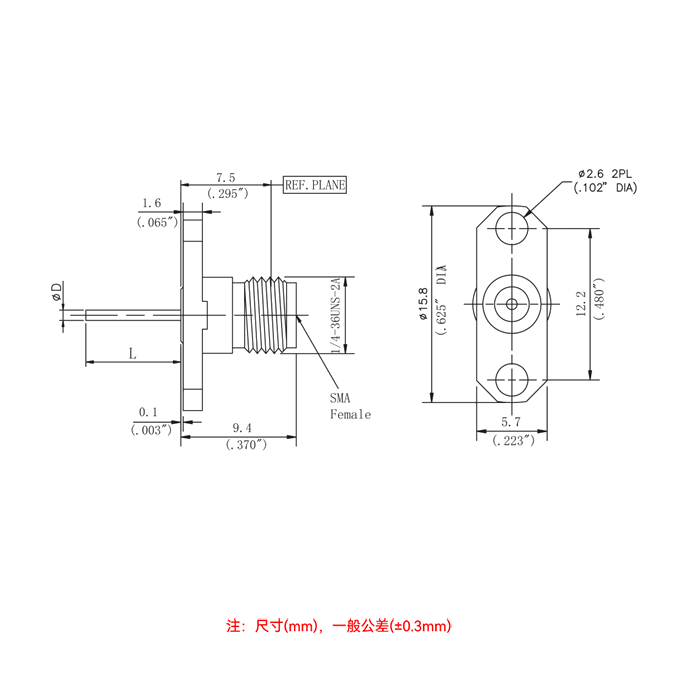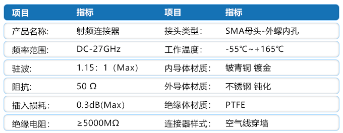 接头类型:SMA-母头 外螺内孔