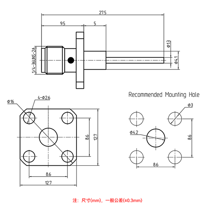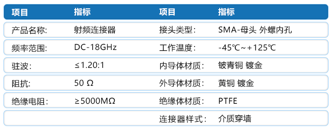 接头类型:SMA-母头 外螺内孔