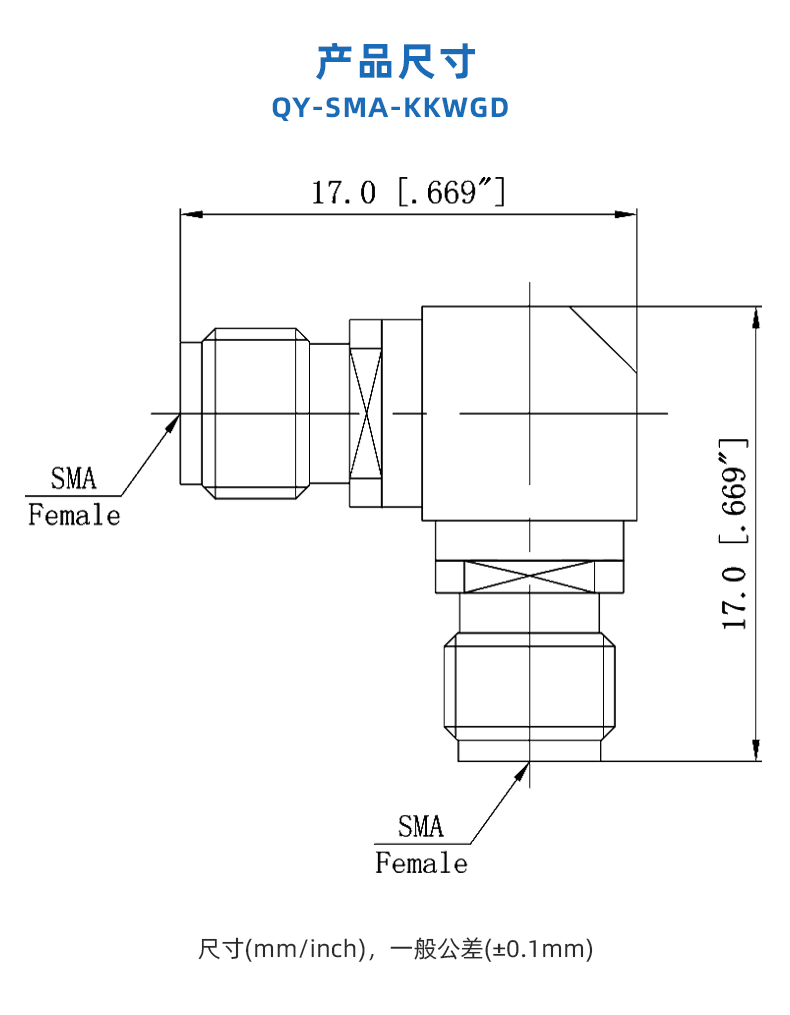 接头类型A:SMA母头 外螺内孔