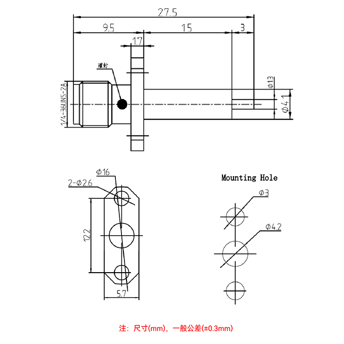 接头类型:SMA-母头 外螺内孔