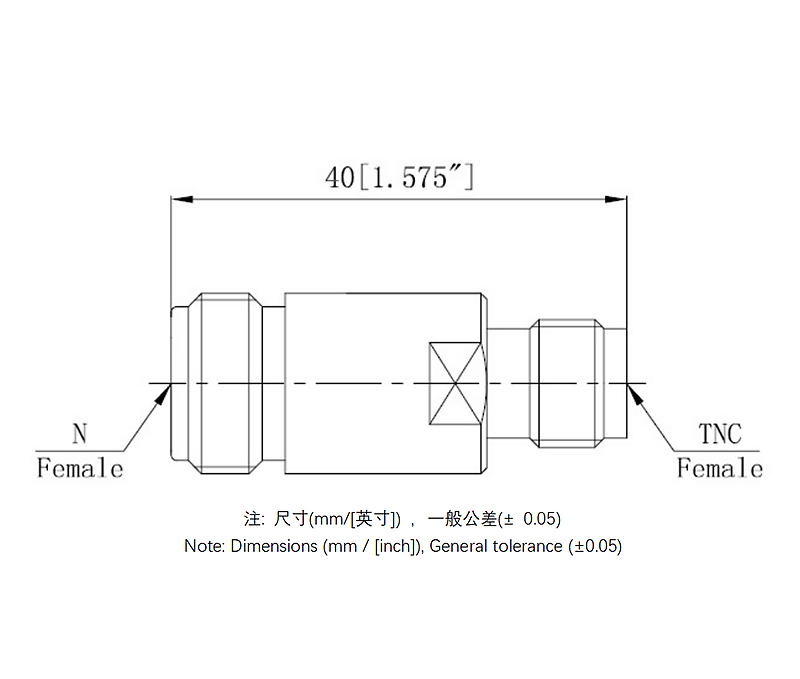 接头类型B:TNC母头 外螺内孔